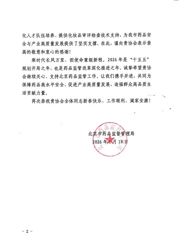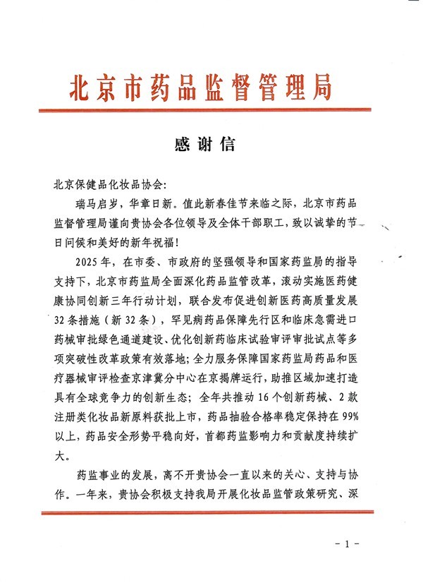 北京市药品监督管理局感谢信